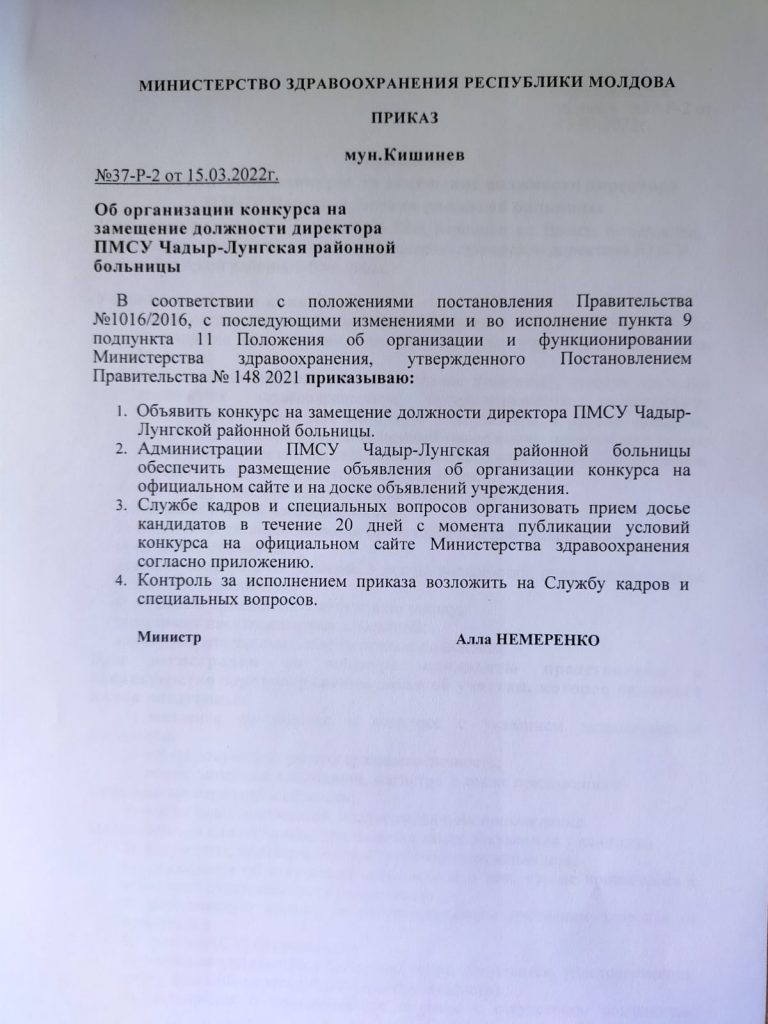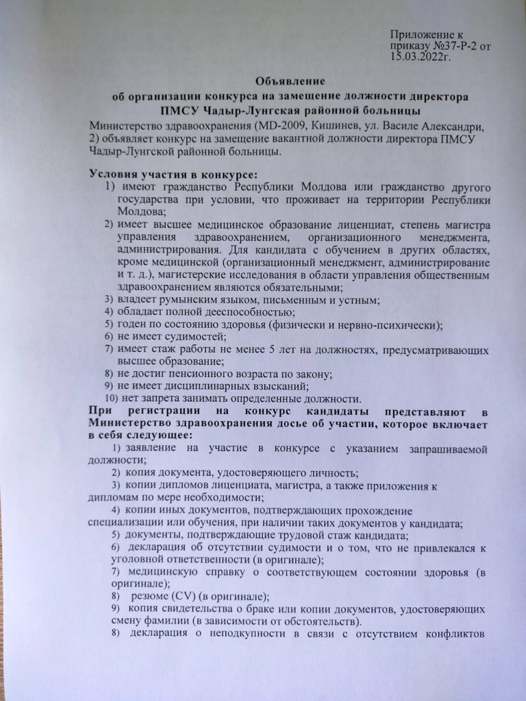 Чадыр-Лунгская районная больница объявляет о проведении конкурса ценовых оферт на приобретение кислорода на 2021 год. Конкурс ценовых оферт будет проведен в электронном формате «10» мая 2021 года. https://achizitii.md/ru/public/tender/21039141/